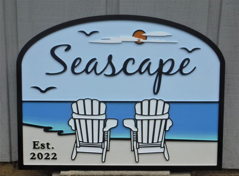Once you place your order, we will produce several designs for your review and send the designs to you via email. Once you receive the designs, you may mix and match any shape, color scheme, font, artwork, etc. to create the beautiful sign that you have envisioned. Our services include, unlimited graphics design and logo creation at no additional charge or we will be happy to use your existing artwork/logo. Once you approve the proof, we will start production of your sign immediately and your sign will be shipped as soon as possible. Please look through the examples below and give us a call toll free at 1-866-219-1550 to discuss a sign that will provide your beach house with a unique inviting image. We are open 7 days a week from 9:00 am until 10:00 pm EST.